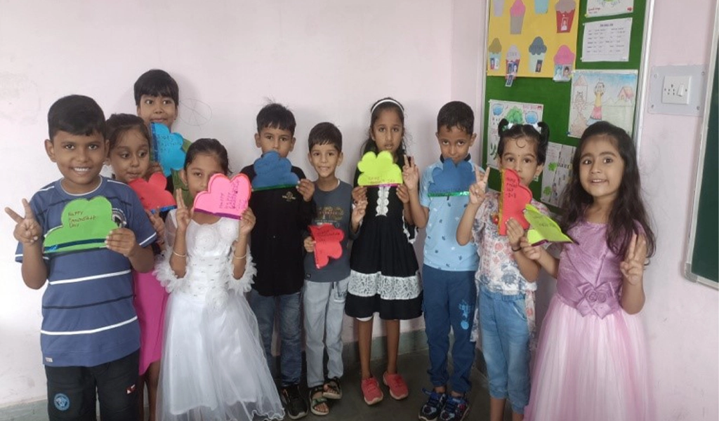 6. Friendship Day Celebration. Friendship day was celebrated at CGKG Vadinar on 09 Aug 24. Various group activities were conducted to promote teamwork and friendship. The students were paired with their buddies and engaged in various activitites showcasing the joy of friendship. A small gift exchange events was also held during which, the student shared handmade cards with their friends.