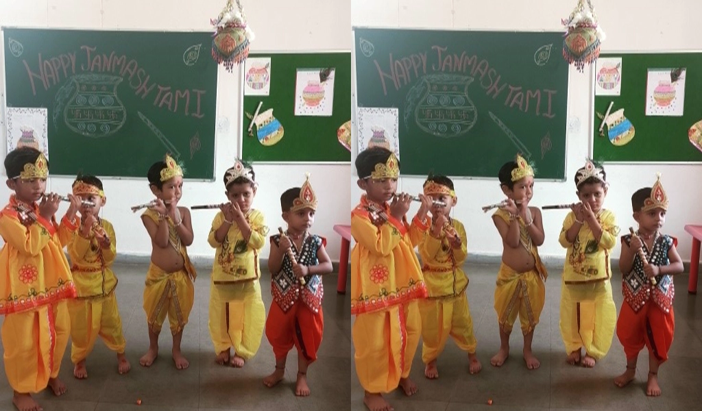 9. Janamashtmi Celebration.Janamashtmi, the birth of Lord Krishna was celebrated with great enthusiasm on 20 Aug 24 at CGKG Vadinar. The students came dressed in their Krishna and Radha costumes. The children enthusiastically participated in a fun-filled dance session, singing Krishna themed songs and bhajans. A mini dahi handi event was also organised.