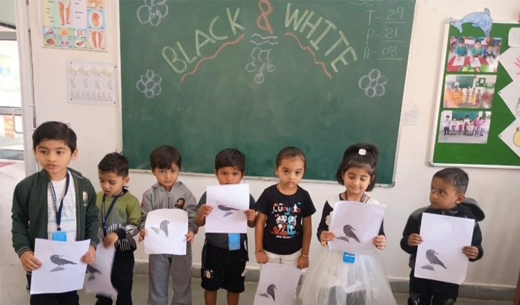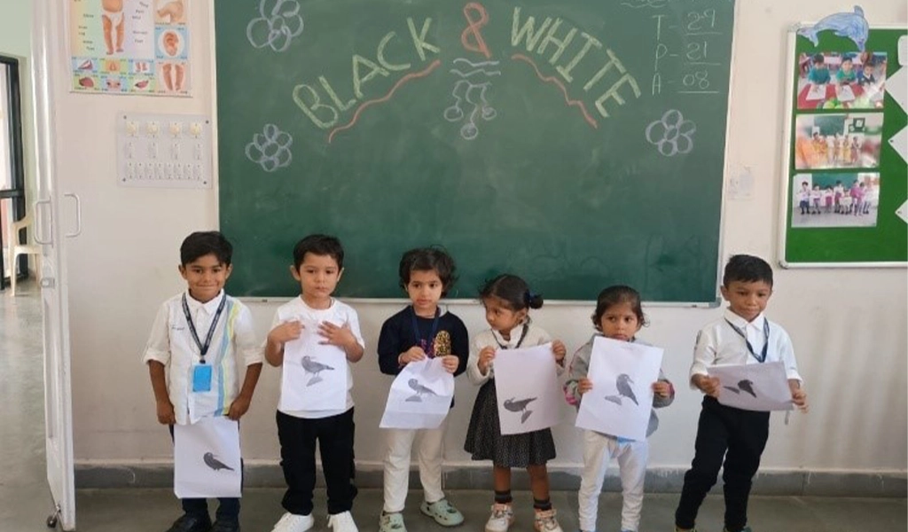 6. Black and white day celebration.Black and White day was celebrated on on 28 Nov 24. The event was aimed to promote unity, equality and self expression among students. The students painted drawing in white and black shade. The students were encouraged to wear black and white attire on the day.