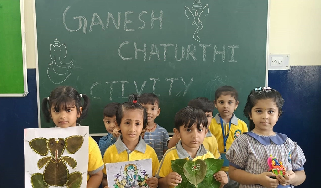 11. गणेश चतुर्थी उत्सव.गणेश चतुर्थी उत्सव 13 सितंबर 24 को मनाया गया, भगवान गणेश को बाधाओं को दूर करने वाले और अच्छे भाग्य का स्वागत करने वाले के रूप में याद किया गया। सभी छात्रों ने अपनी कला और शिल्प कौशल का उपयोग करके भगवान गणेश बनाए.