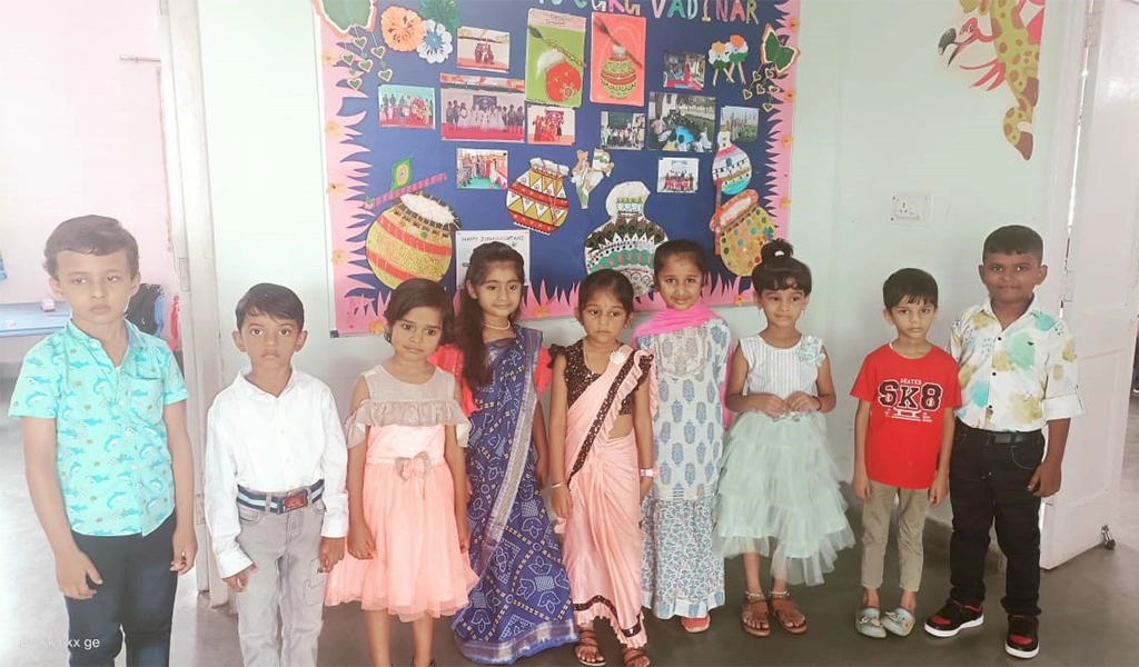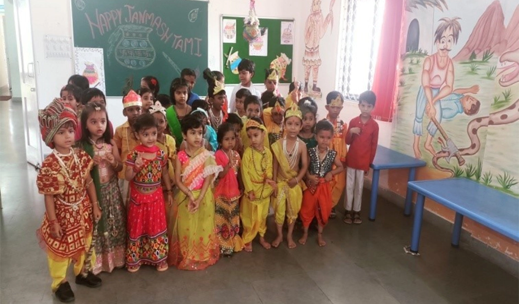 9. Janamashtmi Celebration.Janamashtmi, the birth of Lord Krishna was celebrated with great enthusiasm on 20 Aug 24 at CGKG Vadinar. The students came dressed in their Krishna and Radha costumes. The children enthusiastically participated in a fun-filled dance session, singing Krishna themed songs and bhajans. A mini dahi handi event was also organised.